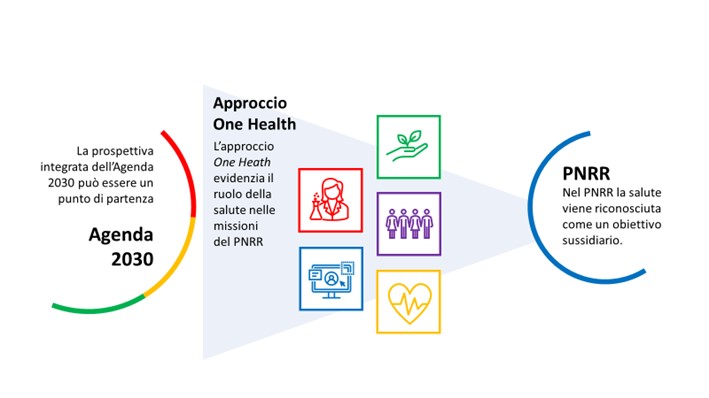 La salute – in particolare l’approccio One Health, che sostiene l’interdipendenza tra esseri umani e pianeta – può diventare una chiave di lettura per il Piano Nazionale di Ripresa e Resilienza. Obiettivo di questo contributo è evidenziare il ruolo della salute e di One Health nel PNRR. In questo senso diventa particolarmente interessante il confronto con l’Agenda 2030, che fa emergere corrispondenze ma anche disallineamenti e possibili spunti di integrazione.
